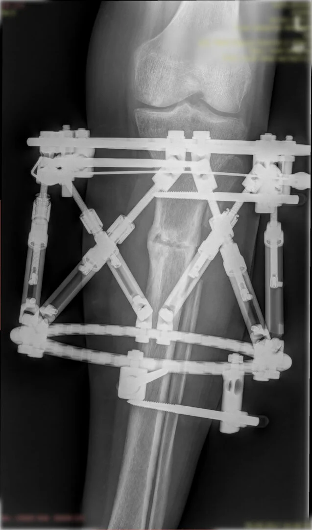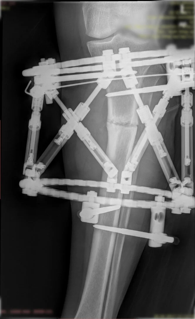 Deformitenin yeri ve miktarına bağlı olarak bilgisayar destekli sirküler eksternal fiksatör ile tedrici düzeltme yapılabilir. Bu sistemin avantajı düzeltme esnasında sistemle oynayarak yeni düzenlemeler yapmanıza izin vermesidir.